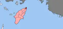 The city of Rhodes is situated in the north-east tip of the island and forms a triangle from north to south. The municipal unit has an area of 19.481 km2.[3] It is the smallest municipal unit of the island in terms of land area and the largest in population. It borders the Aegean Sea to the north, the east and the west and with the municipalities of Ialysos and Kallithea in the south.