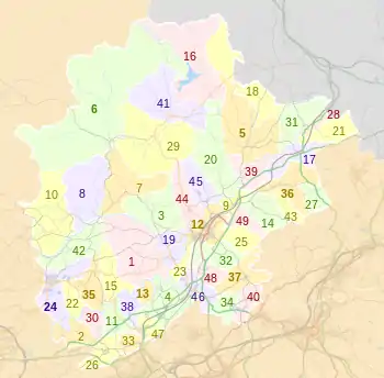 Ribble Valley is a local government district with borough status within the non-metropolitan county of Lancashire, England. The total population of the non-metropolitan district at the 2011 Census was 57,132.[2] Its council is based in Clitheroe. Other places include Whalley, Longridge and Ribchester. The area is so called due to the River Ribble which flows in its final stages towards its estuary near Preston. The area is popular with tourists who enjoy the area's natural unspoilt beauty, much of which lies within the Forest of Bowland.