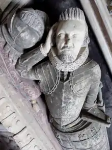 He died without progeny on 19 April 1614,[26] "having long languished" as he wrote in his will dated 7 January 1612.[21] Legend however states that he was either killed fighting pirates near Bucks Mills,[6] or was killed together with many others at a battle at Bitworthy,[21] near Bucks, the site of which is memorialised by a field named "Bloody Park".[27] It is believed that a survivor from this battle sought refuge in Woolfardisworthy Church, but died from his wounds in the churchyard, having buried his "small framed cross" in the graveyard.[28] This cross was discovered many years later by a vicar's daughter, but was lost in 1993. A field between Bucks and Woolfardisworthy Church has the ancient name "Paradise", where it is believed a communal graveyard exists for all the men killed at Bitworthy.[29] Another story explaining the existence of the cross found in the graveyard is that it came from a Spanish sailor whose warship in the Spanish Armada had been wrecked in a storm off the coast in 1588, who similarly attempted unsuccessfully to reach the sanctuary of the church.[30]