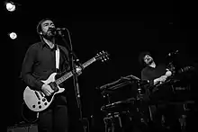 In a 2007 interview, Swift commented on his techniques as a producer and engineer, stating "Most of my recording techniques come from looking at photos on the inside of Sly & The Family Stone or Beatles LPs, or from watching Sympathy for the Devil and thinking, 'Oh! That's where they put the mic!'"[34] Swift is known to often provide hefty contributions as a multi-instrumentalist to the albums he produces.[13] In 2009, he began spending more time working with other artists as producer and band member. May 2010 saw the release of fellow Secretly Canadian recording artist Damien Jurado's record Saint Bartlett.[35][36] In 2010, Swift also produced The Mynabirds' What We Lose in the Fire We Gain in the Flood and co-produced Laetitia Sadier's album The Trip.[13] He joined The Shins in 2011[37] and began touring with The Black Keys as their bassist in 2014.[6] In 2015, he produced the self-titled album for Nathaniel Rateliff & the Night Sweats.[8]
