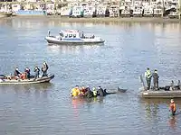 At 7:30 am the next morning BDMLR members, along with Port Authority officials, started observing the whale again. It was decided that the BDMLR would have to assist the whale as she was not strong enough to swim out of the Thames by herself, and had been losing ground against the tide.