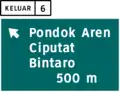 Road signs in Indonesia are standardised road signs similar to those used in other nations but with certain distinctions. As a former Dutch colony, until the 1970s road signs in Indonesia closely followed The Netherlands rules on road signs. Nowadays, Indonesian road sign design are a mix of European, US MUTCD, New Zealand, and Japanese road sign features. According to the 2014 Minister of Transportation's Regulation No. 13 concerning Traffic Signs,[1] the official typeface for road signs in Indonesia is Clearview. Indonesia formerly used FHWA Series fonts (Highway Gothic) as the designated typeface though the rules are not being implemented properly.