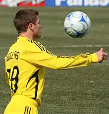 During the following season, Rogers' fourth at Columbus Crew, he made 34 appearances and scored twice.[36] His first goal of the campaign came in a 3–2 win over New England Revolution in May 2010, with Rogers' goal coming in the 91st minute of the match.[37] He also netted in a 2–1 win over Colorado Rapids in the MLS Cup Conference semi-final.[38] Despite Rogers' goal, eventual champions Rapids would go on to win the tie 5–4 on penalties after extra-time.[38] Rogers opened his account for the 2011 season in the club's first game of the season, scoring a late consolation penalty as Crew went down 3–1 to D.C. United.[39] A month later, in April 2011, he scored the only goal of the game in a 1–0 home victory over Sporting Kansas City at Columbus Crew Stadium.[40] It was to be his last goal for the club, in a season where he played 30 times.[41] His last game for the club was in a 1–0 defeat to Colorado Rapids in the MLS Cup wildcard game on October 28, 2011.[42] During his last season with the club, he led the team in assists and was also awarded the 'Crew Hardest Working Player' award.[41][43] In December 2011, it was announced that Rogers was a free agent after he rejected the offer of a contract extension at Columbus Crew.[44][45][46] During his five seasons at Crew, he made 138 appearances and scored 17 times.[47]