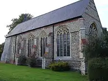 The crusaders remained in Egypt until August 1221. But Fitzwalter had gone home sick, probably at some earlier period. He spent the rest of his life peaceably in England, thoroughly reconciled to the government of Henry III. He must have by this time become well advanced in years. On 11 February 1225 Fitzwalter was one of the witnesses of Henry III's third confirmation of the great charter. In June 1230 he was one of those assigned to hold the assize of arms in Essex and Hertfordshire.[9] According to Matthew Paris, he died on 9 December 1235,[lower-alpha 1] and was buried before the high altar at Priory Church in Little Dunmow. Administration of his goods and chattels was granted to his executors on 16 December 1235. He was described by Paris as a "noble baron, illustrious by his birth, and renowned for his martial deeds".[9]