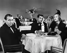 Among his most outstanding works between 1939 and 1941 was for Katharine Hepburn in 1938's Holiday. Kalloch began experimenting for the first time with odd jackets, using them to create new looks for classic outfits.[51] He also designed a yellow chenille robe for her which was widely acclaimed.[52] The media also paid particular attention to his work for Joan Blondell in 1938's There's Always a Woman, where Kalloch had to design a chic-looking wardrobe out of cheap garments and cloth.[46] Another of his important works in this period was a red wool suit designed for Loretta Young in 1940's He Stayed for Breakfast.[53]