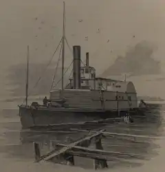 At some point, three crew members pretended to escort family members back home but circled around and[lower-alpha 2] hid aboard another steamer[lower-alpha 3] docked at the North Atlantic wharf.[13][14] At about 3 a.m. May 13, Smalls and seven of the eight slave crewmen made their previously planned escape to the Union blockade ships. Smalls put on the captain's uniform and wore a straw hat similar to the captain's. He sailed the Planter past what was then called Southern Wharf and stopped at another wharf to pick up his wife and children and the families of other crewmen.