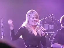 Duffy toured the United Kingdom and Ireland during November and December 2008.[32] To promote Rockferry, Duffy made many visits to American television, including Late Night with Conan O'Brien,[33] and Saturday Night Live.[34] Duffy played a fourteen-city North American tour. Plans had called for her to open for Coldplay on six of the dates.[35] During a concert in Cleveland, Duffy accidentally set the left side of her hair on fire.[36] In New York, Duffy was left apologising to an audience after briefly crying. She explained to the audience that this happens in one out of every 15 of her shows when she feels exposed for reasons she does not fully understand.[37] Duffy also made a recording for British broadcaster BBC, performing at the LSO St. Luke's. The performance was televised in 2009 on the British television station BBC One.[38]