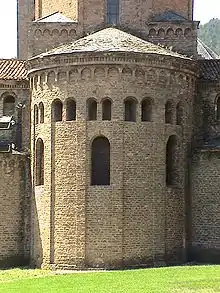 During the Romanesque era, a building was not considered finished until its walls had appropriate paintings.[7] The walls of the most important and significant parts (especially the apses) were lined inside with iconographic paintings, many of which have come down to the twenty-first century, such as those belonging to churches in the Tahull Valley.[8] The walls, both inside and out, were covered with a layer of paint in one color and the imposts, vains and columns were highlighted in the original material, but sometimes they were also painted in bright colors: green, yellow, ocher, red and blue. This custom of painting or revoking the buildings was not new or unique to the Romanesque of the Middle Ages but represented an inheritance or continuity of the construction method from olden times.