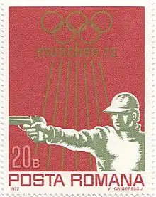 Shooting at the 1972 Summer Olympics on a Romanian stamp