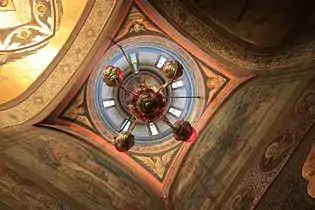 The structure was begun in 1655 and completed in 1659 under the orders of the prince Constantin Șerban.[4] The facade is in the Brâncovenesc style.[5] All of the original frescoes and sculptures were destroyed, except for the icon of Constantine and Helen, who are the patron saints of the cathedral.[4] The present-day frescoes were added in 1923 by Dimitrie Belizarie.[4]