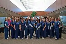 Rose State College offered its first classes on September 21, 1970.[3] Voters in Midwest City, Del City, and portions of southeastern and northeastern Oklahoma City approved the college district in 1968.[3] This vote followed passage of Senate Bill Number 2 in 1967, a law enabling district-operated community colleges to receive state aid. Voters then passed a $1.75 million general obligation bond issue, a two-mill levy for operating expenses in 1969, and a three-mill levy for operations in 1970.[3] In December 1973, the junior college became a member of The Oklahoma State System of Higher Education, after approval from the Rose State College Board of Trustees. Rose State College exists as a publicly created and sustained, open-admissions, associate degree-granting college to provide comprehensive lower-division programs of higher education and related community services.[3] To meet enrollment growth, the Communication Center was built in 1998, providing art, music, and journalism classrooms as well as a home for theatrical and musical performances.[3] Part of the college was destroyed by a tornado on May 3, 1999; some of the damage in this area was rated high-end F4 on the Fujita scale, although F5 was considered.[4] Popularity of the dental hygiene and dental assistant programs led to the construction of the Health Sciences Annex, completed in 2001. Rose State College has grown from an initial enrollment of 1,700 in 1970 to a regular fall enrollment of approximately 8,200. The campus now includes twenty-two buildings on approximately 116 acres (0.47 km2).[2][3]