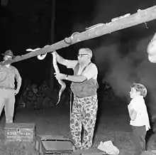 Allen sold the Institute to ABC-Paramount in 1962, but continued as director until early 1975.[9] The Silver Springs Reptile Institute (more commonly known as the Ross Allen Reptile Institute) was a site for research as well as exhibits. Allen developed many snake anti-venoms, including dried anti-venom. He also imported venoms for medical and biochemical purposes.[9] Allen was also very active in teaching survival techniques to Boy Scouts, and often led expeditions into the forests to teach them about native animals and plants.