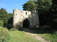 A folly built in 1811 by local master builder George Nettleton[20] to give the appearance of a castle gate. It originally had a wooden roof and an upper room, and was used as a summerhouse, a sewing room for the Nicholson girls, and for social functions such as dinners.[2]