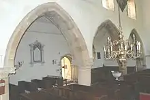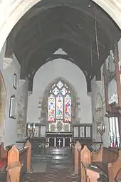 In 1744 the wooden pulpit was built, and during the restoration of 1867–68 it was reduced in height. The pews were rebuilt in the 19th century but include some 17th and 18th century panelling.[1]