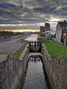 The Royal Canal was originally planned to terminate in Dublin at Broadstone, to serve the then fashionable area of residence, as well as King's Inns and the nearby markets, but it was extended so that now, at the Dublin end, the canal reaches the Liffey through a wide sequence of dock and locks at Spencer Dock, with a final sea lock to manage access to the river and sea.