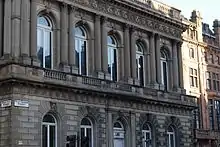 The Society is based at its Library on Nelson Mandela Place, off Buchanan Street in Glasgow's city centre. The maintenance of a library was first proposed in 1736, and one was eventually established in 1817.[2] It moved in 1856 to its present location, a Venetian-style building by Charles Wilson, who also designed 22 Park Circus and Lews Castle on Stornoway.[3][4] It became a Category A listed building in 1966.[3] The Library has grown to become the largest law library in the West of Scotland,[2][4] covering all practice areas. It contains series of law reports, purchases copies of every legal text published and increasingly provides electronic resources to members.[2] It is also available to hire as a venue for meetings and private events.