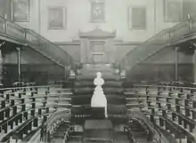 The Romantic era at the turn of the 19th century was for Scotland a golden age of literature, winning the Royal High School an international reputation and an influx of foreign students, among them French princes.[16] The historian William Ross notes: "Walter Scott stood head and shoulders above his literary contemporaries; the rector, Alexander Adam, held a similar position in his own profession."[17] By the end of the Napoleonic Wars, an old scholar remembered, 'there were boys from Russia, Germany, Switzerland, the United States, Barbadoes, St. Vincent, Demerara, the East Indies, besides England and Ireland.'[18] The Royal High School was used as a model for the first public high school in the United States, the English High School of Boston, in 1821.