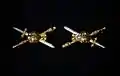 The royal insignia (Dutch: koninklijk distinctief)[1][2] is the military insignia specially designed for Willem-Alexander of the Netherlands for use on his military uniforms after his investiture as King of the Netherlands in 2013. The insignia consists of a globus cruciger with the sword of state and a sceptre crossed behind it. The King wears the insignia on his shoulder straps in lieu of the shoulder marks used as rank insignia in the Dutch Armed Forces.[1]