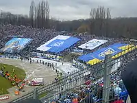 Ruch's popularity exploded in the 1930s and remained strong up to this date, especially in Upper Silesia. A specific subculture of szalikowcy (the name derived from szalik - scarf) developed in the 1970s, as elsewhere in the country, but in the region only after it first appeared among the fans of Polonia Bytom.[13] There are also hooligans (Psycho Fans, formed in the mid 1990s) and ultras („Nucleo Ultra '03" from 2003, replaced by „Ultras Niebiescy", formed in 2008).