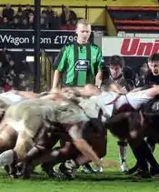 Rugby union match officials are responsible for enforcing the rugby union laws of the game during a match and imposing sanctions on individuals who do not follow the rules. "Every match is under the control of match officials who consist of the referee and two touch judges or assistant referees."[1] Further officials can be authorised depending on the level and form of the game.[2]