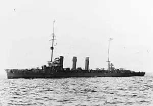 SMS Bremse was a Brummer-class minelaying light cruiser of the German Kaiserliche Marine. She was built by AG Vulcan Stettin in 1915 and launched on 11 March 1916 at Stettin, Germany, the second of the two-ship class after her sister, SMS Brummer. She served during the First World War, operating most of the time in company with her sister. The two ships took part in an ambush on a convoy in the North Sea, where they sank two destroyers in a surprise attack, before hunting down and sinking nine merchantmen, after which they returned to port unscathed.