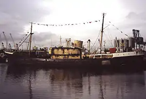 Thanks to charitable donations and fundraising, the society was able to purchase the vessel from the ship breakers almost intact. Initial preservation work began while the ship was re-anchored once again in the Cromarty Firth but a secure berth was required. Wildlife, vandals and the harsh weather were taking their toll. In 1996 following an insurance payout as the result of a collision between SS Explorer and an offshore oil support vessel, the Society brought her home to Leith, her port of registry, for restoration.[2]