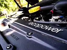 The Viggen is powered by Saab's 2.3 L B235R engine, running at a 9.3:1 compression ratio and fitted with Nimonic valves.[6] Initially rated at 225 bhp (168 kW; 228 PS), power later increased to 230 bhp (172 kW; 233 PS) on 1.0 bar (15 psi) of boost from its Mitsubishi TD04-HL15-5 turbocharger.