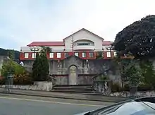 The church was popularly known as "the Basilica", because of its palladian architectural style.[2] It was designated as the Cathedral of Wellington in 1984 after earthquake strengthening and the addition of the Blessed Sacrament chapel, foyer, sacristy, courtyard, hall (called Connolly Hall) and piazza. The parish of Thorndon was administered by the Society of Mary (Marist Fathers) for eighty-five years until 1935,[3] although secular or diocesan clergy were also stationed there.[4] The founder of the see, Bishop Viard, and the first two Archbishops, Redwood and O'Shea, were also members of the Society of Mary. Since 1954 all the archbishops and the resident clergy of the Cathedral have been secular clergy.[3]