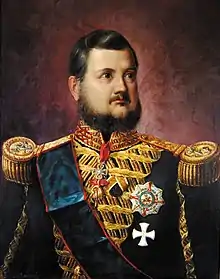 The Sacred Military Constantinian Order of Saint George (Italian: Sacro Militare Ordine Costantiniano di San Giorgio, Spanish: Sagrada Orden Militar Constantiniana de San Jorge), also historically referred to as the Imperial Constantinian Order of Saint George[1] and the Order of the Constantinian Angelic Knights of Saint George,[2] is a dynastic order of knighthood of the House of Bourbon-Two Sicilies.[3] Currently, the grand magistry of the order is disputed among the two claimants to the headship of the former reigning House of Bourbon-Two Sicilies as heirs of the House of Farnese, namely Prince Pedro and Prince Carlo. The order was confirmed as a religious-military order in a 1718 papal bull owing to a notable success in liberating Christians in the Peloponnese. Alongside the Sovereign Military Order of Malta it is the sole international Catholic Order which still has this status today.[4] Although it is not an order of chivalry under patronage of the Holy See, membership is restricted to practising Catholics.[5][6]