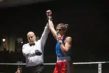 Sadaf Khadem (born 1995)[1] is a female boxer from Iran.[2] She held her first international fight on April 14, 2019 where she defeated Anne Chauvin from France.[3] Khadem is the first female boxer since the Iranian