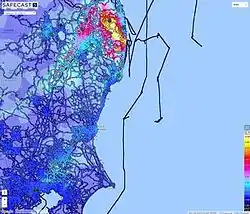 The Safecast team, with help of International Medcom, Tokyo Hackerspace and other volunteers, has designed various devices for radiation mapping. Haiyan Zhang had developed a widely used interactive map of radiation levels around Japan, and was a mapping consultant in the formative phase of Safecast.[2] The devices which were developed include the bGeigie and bGeigie Nano for mobile applications (carborne and walking measurements) as well as fixed stations called Pointcast. Despite being a citizen science project, the methodology and toolsets Safecast has developed and deployed are cited in scientific literature.[3]