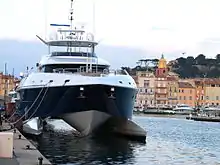 Saint-Tropez (US: /ˌsæn troʊˈpeɪ/ SAN-troh-PAY,[3] French: [sɛ̃ tʁɔpe]; Occitan: Sant-Tropetz, pronounced [san(t) tʀuˈpes]) is a town on the French Riviera, 68 kilometres (42 miles) west of Nice and 100 kilometres (62 miles) east of Marseille in the Var department of the Provence-Alpes-Côte d'Azur region, Southern France. The adjacent narrow body of water is the Gulf of Saint-Tropez (Golfe de Saint-Tropez).