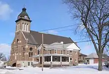 The first Christian services held in Madison were Presbyterian, taking place in Barnes's and other homes. A Presbyterian congregation was organized in 1870,[8] and a church built in 1872.[9] A Methodist circuit encompassing Madison and Antelope counties was organized in 1871; a parsonage was built in Madison ca. 1875, and a church begun in 1877.[10] A Lutheran congregation may have formed in Madison in about 1875,[3] although early records are incomplete; the congregation was initially served by the pastor of a Lutheran church in Green Garden Precinct, located about seven miles (11 km) southwest of Madison. It was formally organized in 1885, and a church built in Madison in 1887.[11][12]