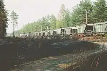 In 1918, after Finnish independence and during the Finnish Civil War, communications between Finland and Soviet Russia ceased. In spring 1918, troops under Georg Elfvengren blew up the track to prevent supplies reaching Red Guard units operating near Rautu.[3][4] The railway was cut between Nuijala (67th km) and Lembolovo and 1.7 kilometers of track was removed on the Finnish side.[5] The Leningrad – Lembolovo part became part of NKPS Soviet Railways 1919 - 1939. This section was operated by at first by Nikolai Railway and later, after name change, the October Railway.