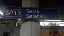 Salak Selatan LRT station is a Malaysian low-rise rapid transit station situated near and named after the Kuala Lumpur township of Salak South (Malay: Salak Selatan). The station is part of the Sri Petaling Line (formerly known as STAR).