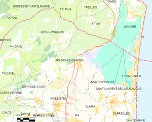 Salses-le-Château is located in the canton of La Vallée de l'Agly and in the arrondissement of Perpignan.