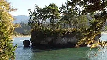 Salt Creek Recreation Area is a 196-acre park located about 15 miles west of Port Angeles, Washington on U.S. Route 101 near the city of Joyce, Washington. The park was previously Camp Hayden, a World War II military camp built 1942–1945. It was purchased by the Federal General Services Administration after the war. There are still several structures left from the fort, including two large casemates which sheltered 16" guns and several other structures. The 16-inch battery was Battery 131, with two ex-Navy 16-inch Mark 2 guns capable of firing a one-ton projectile around 28 miles connected by a large magazine bunker. The camp also had Battery 249, which had two 6-inch guns with a bunker housing magazines and fire control equipment.[1]