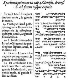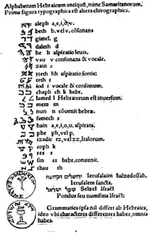 The Samaritan language first became known in detail to the Western world with the publication of a manuscript of the Samaritan Pentateuch in 1631 by Jean Morin.[4] In 1616 the traveler Pietro della Valle had purchased a copy of the text in Damascus, and this manuscript, now known as Codex B, was deposited in a Parisian library.[5] Between 1815 and 1835, Wilhelm Gesenius wrote his treatises on the original of the Samaritan version, proving that it postdated the Masoretic text.[6]