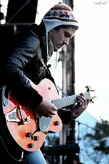 Throughout his career he has also been invited by EMI Music to be a participate in Colombia's tribute to Coldplay in Bogota to celebrate their album Milo Xyloto, he was also invited to perform in "A Tribute to The Beatles",[9] he was remarked as one of the musical promises in Colombia for the year 2013 by "Shock magazine",[10] invited to feature in the song "Corazón Valiente" promoting peace campaign #SoyCapaz in Colombia next to many other recognized artists in the country.[11] He was also invited to sing and perform a showcase at the "Bogotá Music Market 2014 BOmm" for being outstanding and "ready to export" Colombian music.[12]