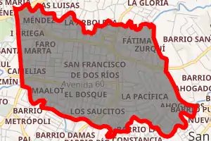 San Francisco de Dos Ríos is the sixth district of the San José canton, in the San José province of Costa Rica.[1][2] It is one of the administrative units surrounding San José downtown (officially composed by the districts of El Carmen, Merced, Hospital and Catedral). The district is primarily residential and industrial. It's also famous for the numerous motels between its boundaries.