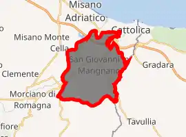 San Giovanni in Marignano (Romagnol: San Giàn or San Zvan in Marignèn) is a comune (municipality) in the Province of Rimini in the Italian region Emilia-Romagna, located about 130 kilometres (81 mi) southeast of Bologna and about 20 kilometres (12 mi) southeast of Rimini.