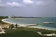 From 1957 to 1959 USN Mobile Construction Battalion 7 constructed a LORAN Station on the north end of the island on the shores of Grahams Harbour.[8] The station is now the site of the Gerace Research Centre (formerly known as the Bahamian Field Station).[9] More than 1,000 students and researchers work from the station every year as a base of operations for studying tropical marine geology, biology and archaeology.