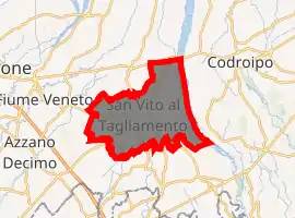 San Vito al Tagliamento (Friulian: San Vît dal Tiliment) is a comune (municipality) in the Province of Pordenone in the Italian region Friuli-Venezia Giulia, located about 80 kilometres (50 mi) northwest of Trieste and about 20 kilometres (12 mi) southeast of Pordenone.