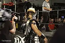 On July 1, while still in Canada, Sanada announced his resignation from All Japan, taking part in a mass exodus caused by Nobuo Shiraishi becoming the promotion's new president.[20] Following his resignation, Sanada traveled to Mexico on his own expense to continue his training.[21] Though Sanada was not announced as part of Keiji Mutoh's splinter promotion Wrestle-1, he did make a surprise appearance at the promotion's inaugural event on September 8, losing to Kai in a singles match.[22] Sanada and Kai had a rematch in the main event of Wrestle-1's second show on September 15; this time Sanada was victorious.[23] On September 24, Wrestle-1 announced that Sanada had signed a contract with the promotion.[24][25] Sanada wrestled his first match under a Wrestle-1 contract on October 6, losing to Kai in the main event of the promotion's first event in Korakuen Hall. As a result, Kai won the series between him and Sanada 3–2.[26][27] On November 16, Sanada unsuccessfully challenged visiting American wrestler A.J. Styles for the TNA World Heavyweight Championship.[28]