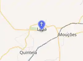 In the 9th century, the nuns who abandoned the Convent of Sismeiro, destroyed in 982 by Almansor, transported with them a small image of Nossa Senhora da Lapa ("Our Lady of the Rock", roughly translated), which they hid in Quintela.[1] It was only in 1498, that the first cult to Senhora da Lapa was started, after the image was discovered in the rocks of the village, by a mute child named Joana.[2] The construction of an altar, was done through the initiative of the abbey of São Paio, in the parish of Vila da Rua, who became the first guardian, collecting alms from the parishioners for the construction of a temple. The faithful began to visit, in pilgrimage, to the place with the image was found during the first years of the 16th century.[3]