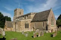 The earliest parts of the Church of England parish church of St Martin include the north arcade, which is of three bays and has octagonal columns. The chancel may have been completed in 1273, which is when the church was rededicated. The south door and vaulted porch are Decorated Gothic. Later in the Middle Ages Perpendicular Gothic features were added, notably the clerestory of the nave and the embattled west tower. On the east side of the chancel arch is a painting of the arms of Queen Elizabeth I[7] on a panel of wood.[8]