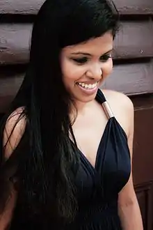 Sangita is noted for her versatility, ease in handling the different musical genres and commanding stage presence.[10][11] Her live rendition of Sweeny Todd's "Worst Pies in London",[12] and Georges Bizet's "Habanera",[13] as part of the MMA's "Over The Rainbow",[14] is Sangita at her entertaining best. She has been a part of the Madras Musical Association choir since the age of 15.[15][16][17][18][19] She has given several solo performances at events staged by the MMA both in India and other countries.[20][21][22][11][23] In 2009,she performed at the Vatican and the Pantheon in Rome, Italy as part of the International Church Music Festival.[24] She has sung under world famous conductors such as Sir David Willcocks and Paul Leddignton Wright. In 2000, while still in school, she performed at the Sydney Torch Relay ceremony as part of the Sydney Olympics under Dr. Ronald Smart. She has sung for several international gospel artists on tour, the most renowned being Ron Kenoly, Don Moen, Ernie Haase and Signature Sound and Benny Prasad.[25]