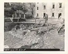 After other people were killed through the village, their corpses were set on fire (at the church, the soldiers used its pews for a bonfire to dispose of the bodies). The livestock were also exterminated and the whole village was burned down. All this took three hours. The SS men then sat down outside the burning Sant'Anna and ate lunch.[10]