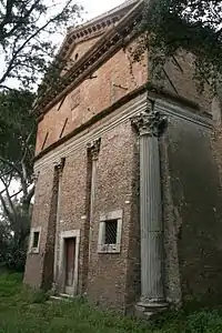 The original construction on the site was a pagan temple or perhaps a tomb, from around 160 AD. This is believed to have been dedicated to Ceres and Faustina, wife of Antoninus Pius, although one early historian, Pompilio Totti, believed that it was dedicated to Bacchus.[1] The site lies on land that was formerly part of the Triopio, an estate owned by the Roman Senator of Greek origin, Herodes Atticus and his wife Aspasia Annia Regilla. It is considered that the temple was also dedicated to her by her husband after her death at the hands of one of his freed slaves.[2]
