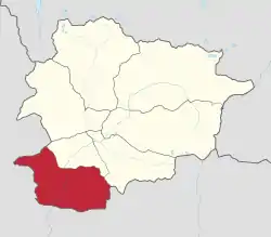 Sant Julià de Lòria (Catalan pronunciation: [ˈsaɲ ʒuliˈa ðə ˈlɔɾiə]) is one of the parishes of Andorra, in the far south of that country. It is also the name of the main town of the parish, which at 908 m is the lowest settlement in Andorra. Other settlements in the parish include Bixessarri, Aixàs, Aixovall, Certers, Llumeneres, Nagol, Aixirivall, Auvinyà, Juberri, Fontaneda, and Canòlic. It is bordered by Andorra la Vella in the north, Escaldes-Engordany in the northeast and Catalonia, Spain in the south, east, west, northwest, southwest and southeast.